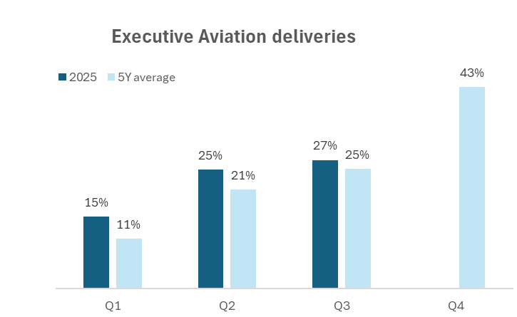 · Executive Aviation delivered its 2,000th business jet during the quarter, and there is only 32% of the midpoint of the annual guidance left for 4Q