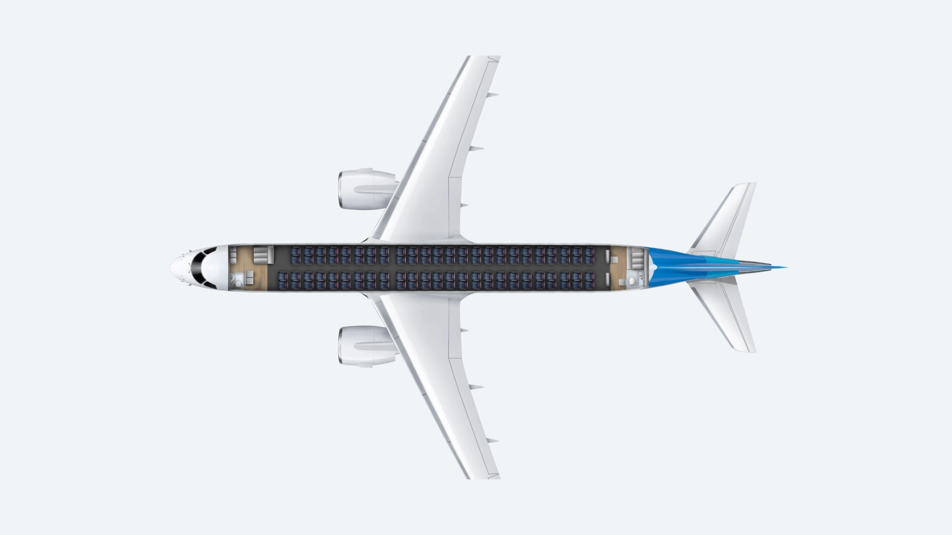 The E190-E2 is reconfigured to have 50 seats with 2+2 seating, providing extra space and comfort.